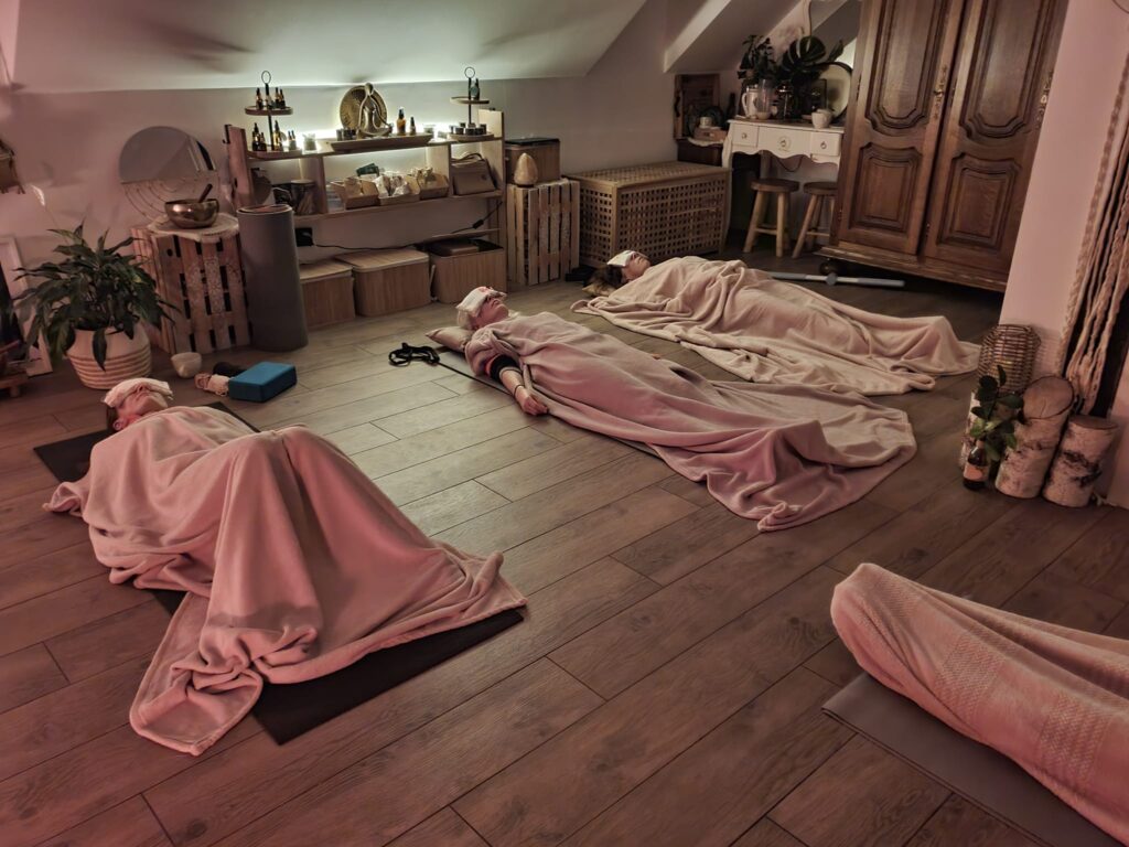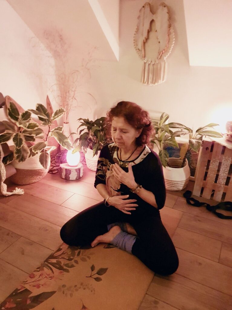 W świetle świec, przy aromaterapii i kojących dźwiękach mis tybetańskich prowadzę praktykę, w której spotykają się: oddech, łagodny ruch, uważność i regenerująca relaksacja. Pracuję metodami, które rozwijam i stosuję od ponad 20 lat w pracy z ciałem oraz z klientkami.