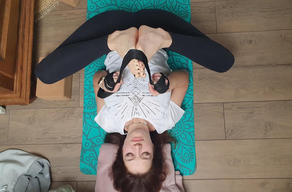 • zaopatrz się w matę do jogi, klocki do jogi, pasek do jogi