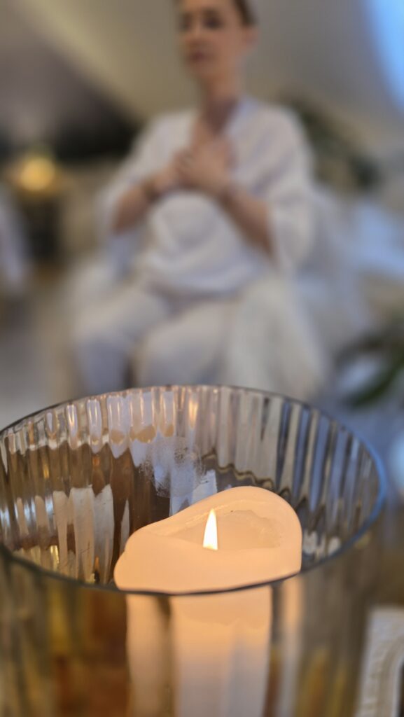 Ciało reaguje w swój naturalny sposób. Może pojawić się ciepło, rozluźnienie, przepływ lub głęboki spokój. Wiele kobiet opisuje ten moment jeko uczucie ulgi — jakby coś ciężkiego poprostu rozpłynęło się w nich. To sygnały, że wracasz do swojej autentyczności.