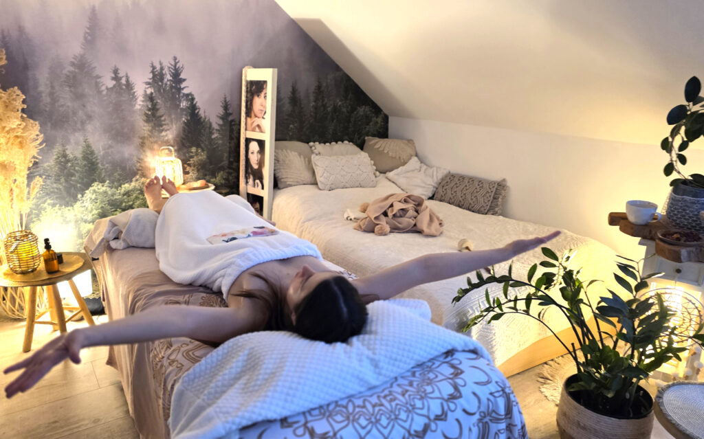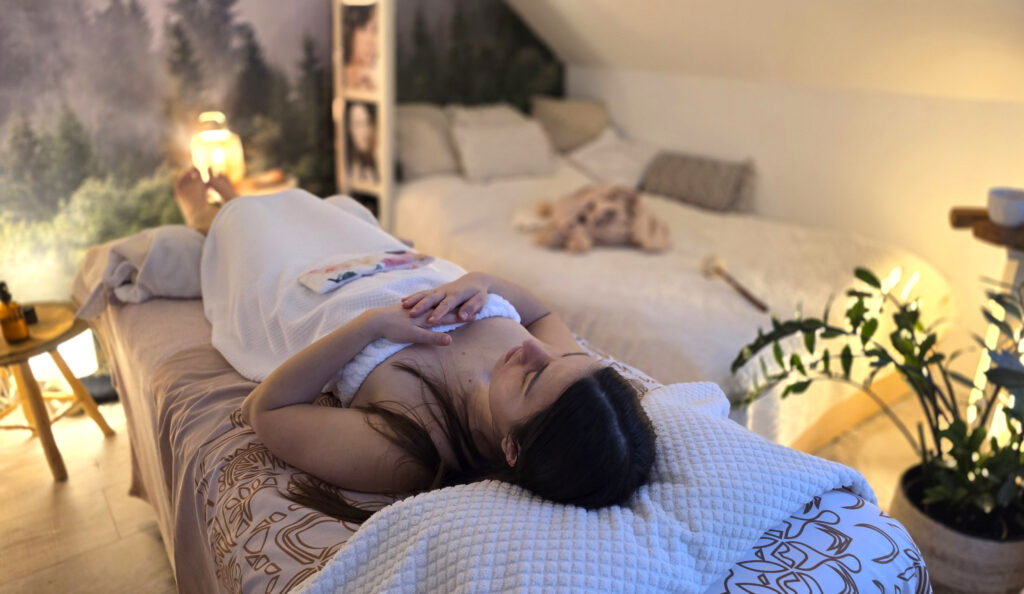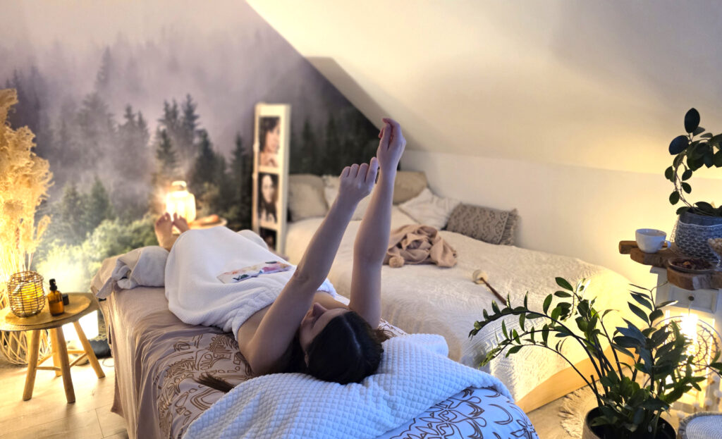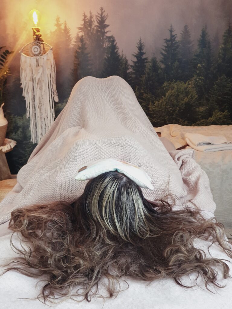 Sesja regeneracyjnej relaksacji przywraca kobiecą energię, lekkość i wewnętrzną równowagę.