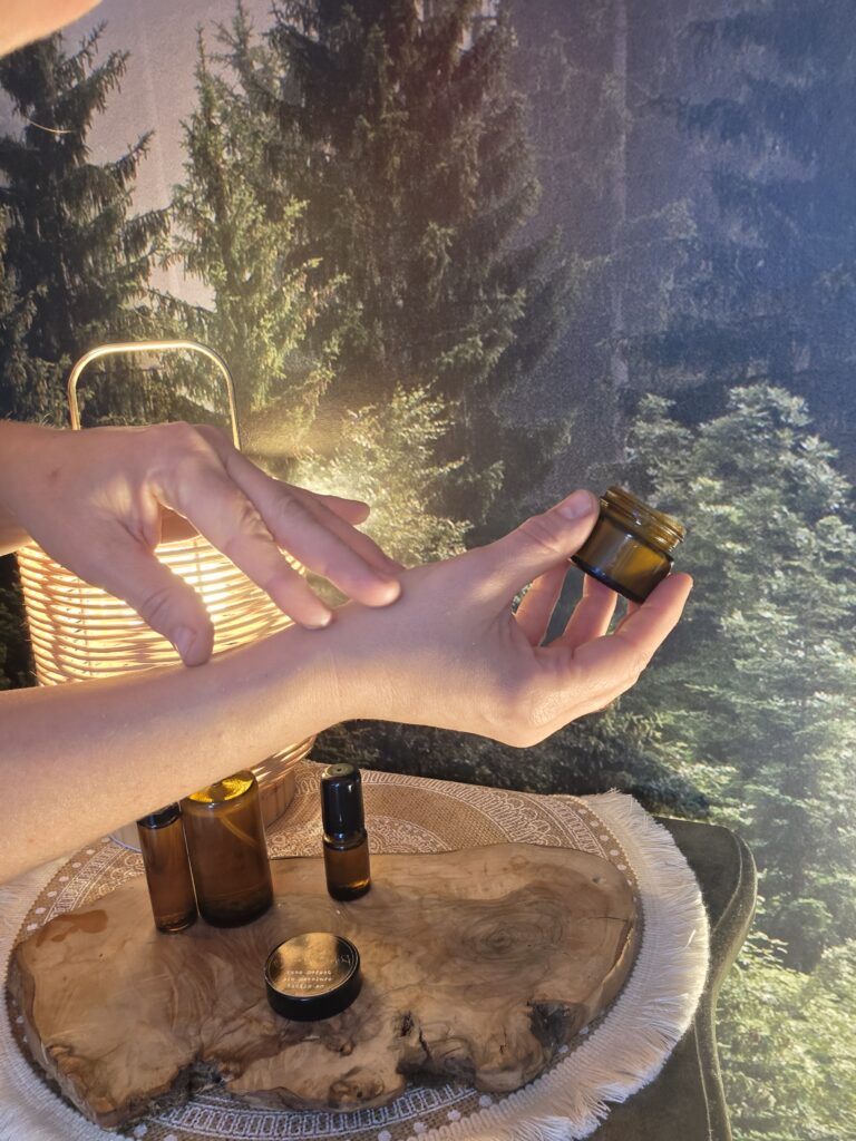 Spotykamy się w przestrzeni Studio Perfect Healing, przygotowanej dla Ciebie. Przy filiżance ciepłego naparu z ziół i kwiatów, rozmawiamy od Twojej intencji i potrzebach. Ja jestem dla ciebie, słucham, nie oceniam. Wypełniam kartę informacji, która pozwala mi jeszcze lepiej zadbać o Twoje potrzeby i doberać moje naturalne aromaterapeutyczne kosmetyki wspierające Twoje doświadczenie.