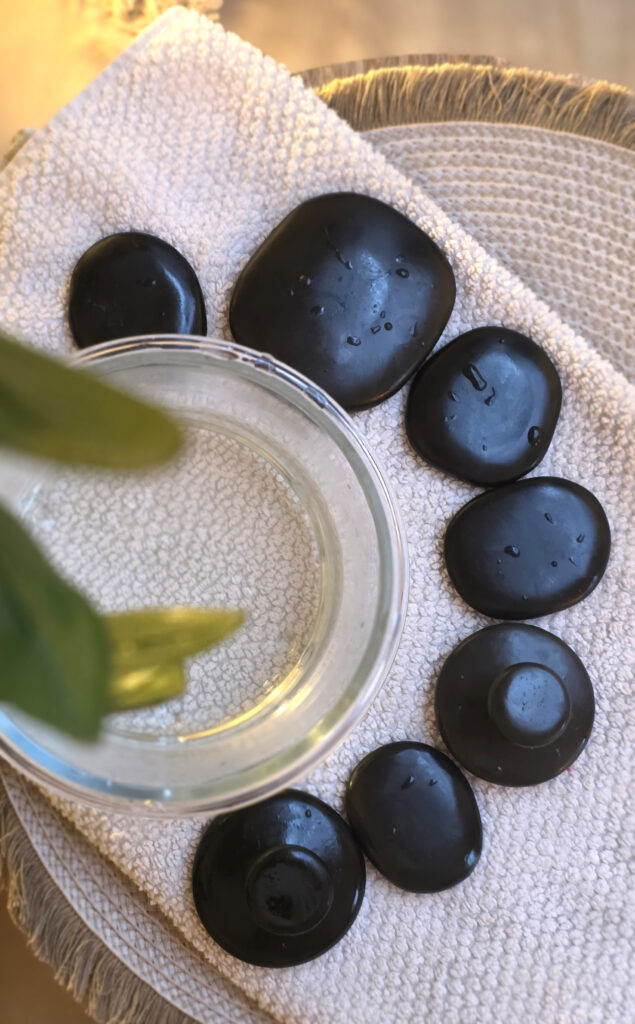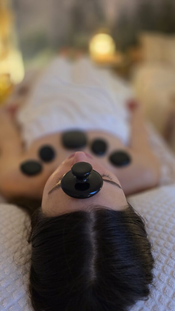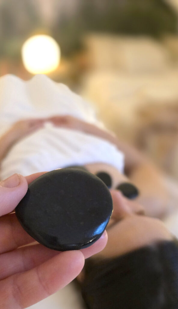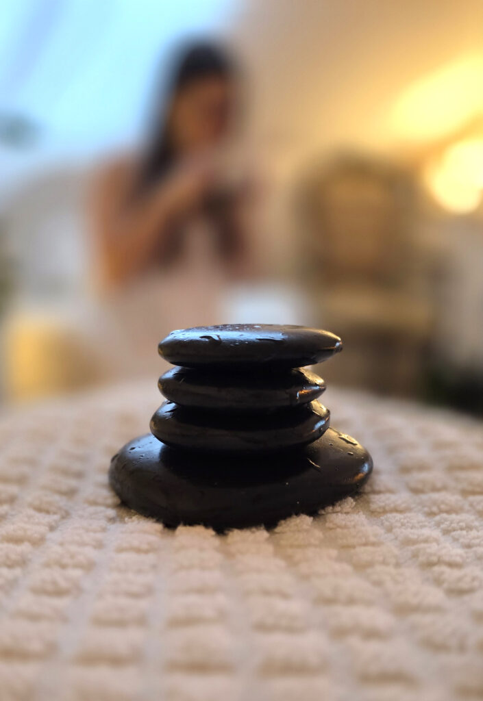 Gdy ciało jest już otulone kocem i zapachem, rozpoczynam masaż gorącymi kamieniami. Ich ciepło przenika przez skórę, rozpuszczając napięcia zgromadzone w mięśniach. Dotyk jest powolny i świadomy, a temperatura kamieni zawsze dostosowane do Twojej wrażliwości.
